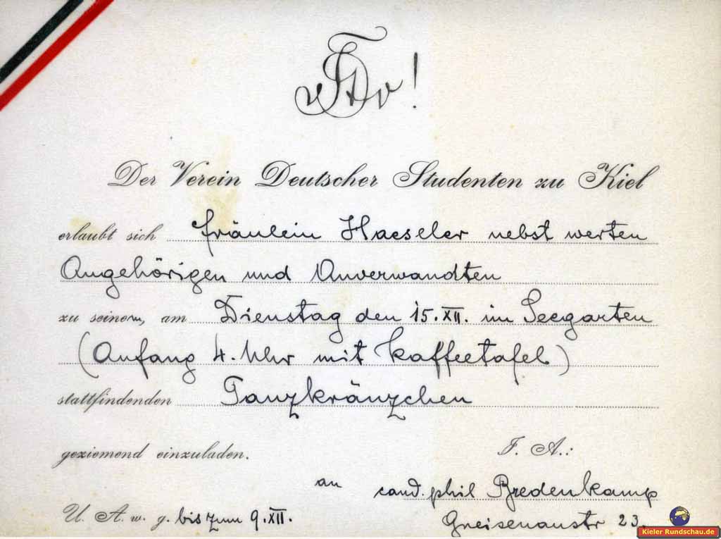 Der Verein Deutscher Studenten zu Kiel lädt zum Tanzkränzchen. Um 1905