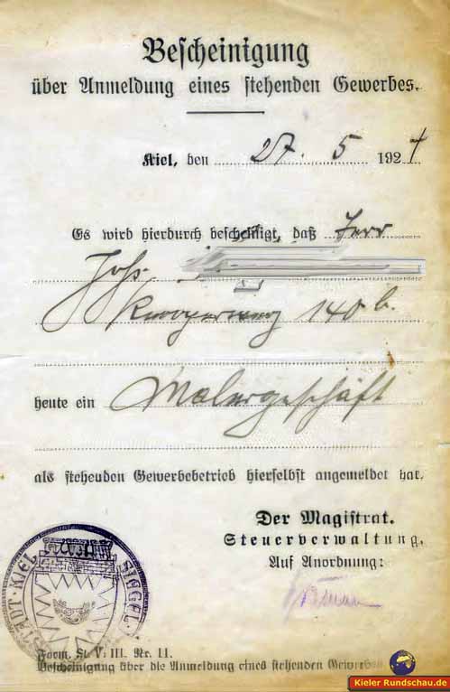 Gewerbeanmeldung von 1924