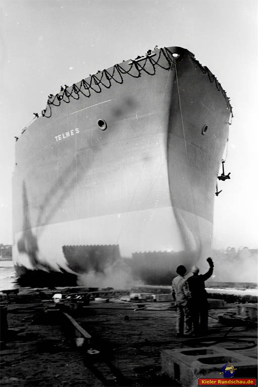 12.9.1965 Auf dem Gelände des Seefischmarkt wird der Kiel Leuchtturm montiert.