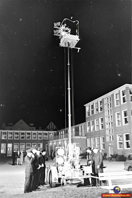 12.9.1965 Auf dem Gelände des Seefischmarkt wird der Kiel Leuchtturm montiert.