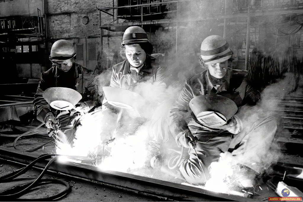 1965 Kiel, Howaldswerke, Kranführerinnen.