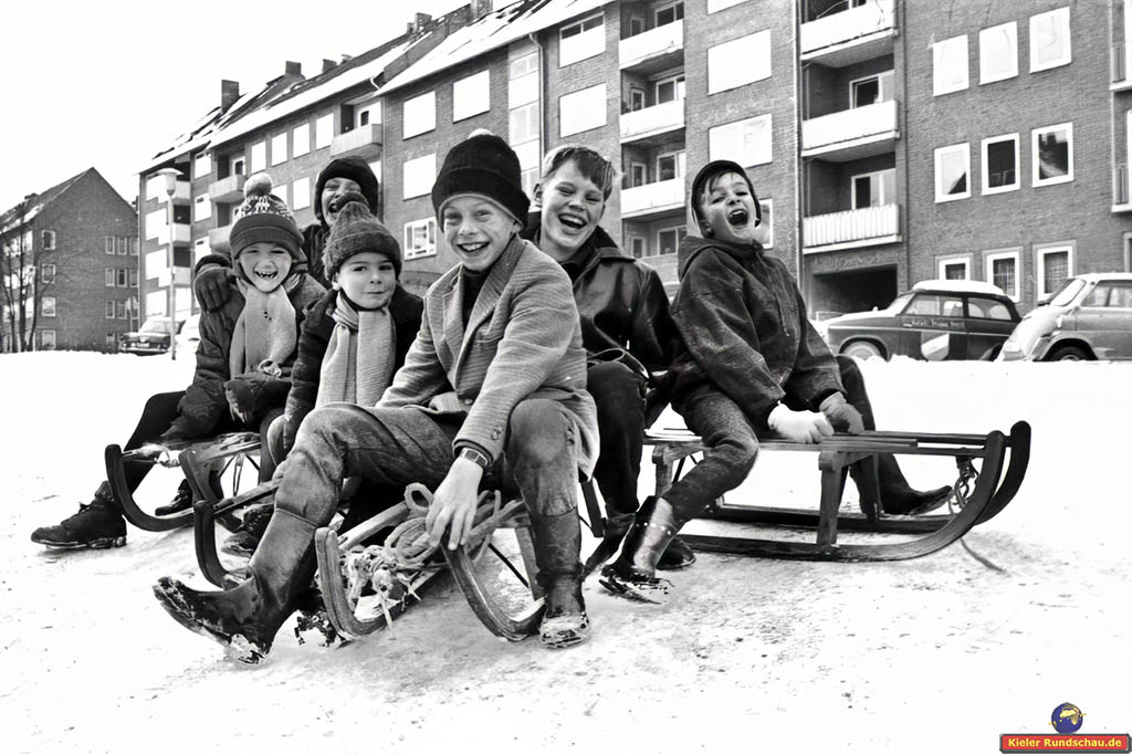 Februar 1966. Wellingdorf, eine Schlittenfahrt die ist lustig