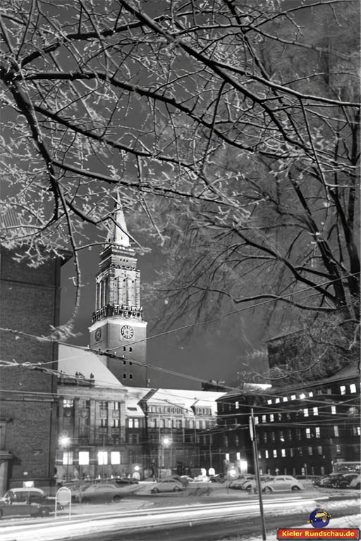 12.9.1965 Auf dem Gelände des Seefischmarkt wird der Kiel Leuchtturm montiert.