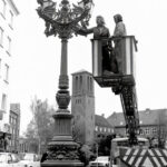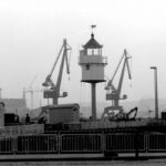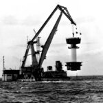 12.9.1965 Auf dem Gelände des Seefischmarkt wird der Kiel Leuchtturm montiert.