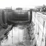 Reventlou-Brücke, ein gesunkenes Segelboot wird gehoben. 4. März 76