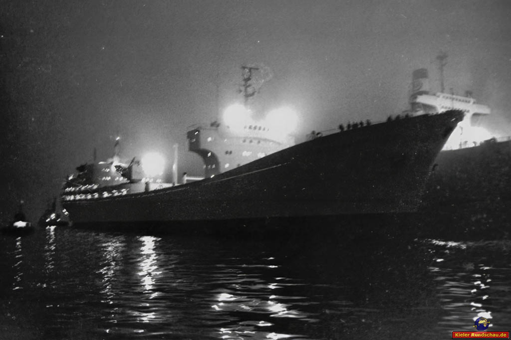 31. Juli 1968 Atomschiff Otto Hahn liegt bei HDW an der Pier