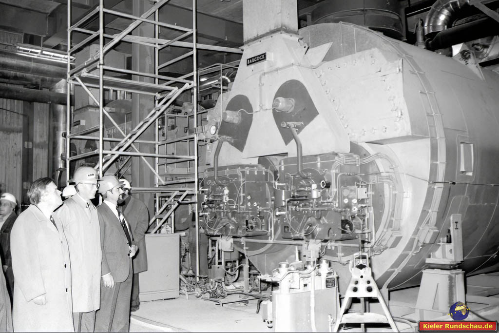 12.9.1965 Auf dem Gelände des Seefischmarkt wird der Kiel Leuchtturm montiert.