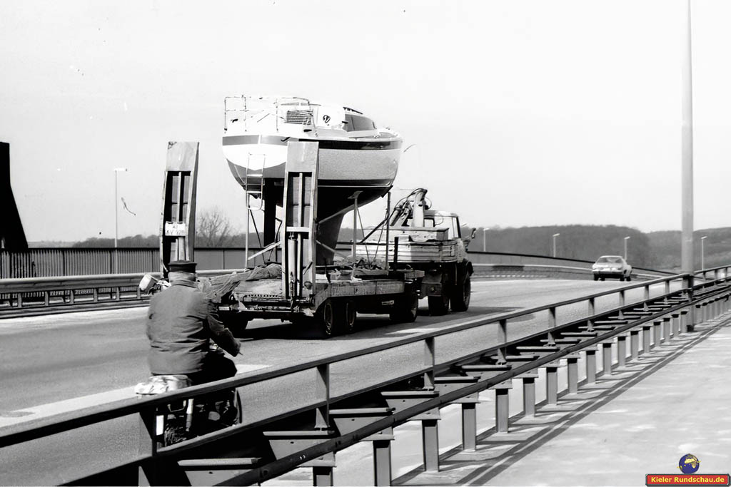 Reventlou-Brücke, ein gesunkenes Segelboot wird gehoben. 4. März 76