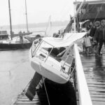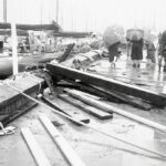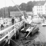 Reventlou-Brücke, ein gesunkenes Segelboot wird gehoben. 4. März 76
