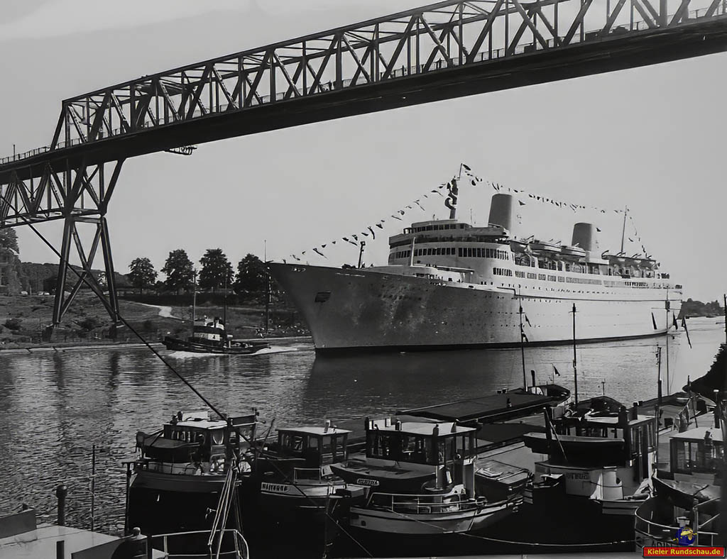 Undatiert. Die alte Holtenauer Hochbrücke, Blick vom Nordhafen.